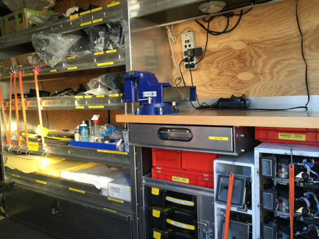The shop Truck not only carries the tire(s) but also a heavy duty impact gun and an air supply system that can operate the impact gun. This allows the job to be done much more quickly than by hand. And