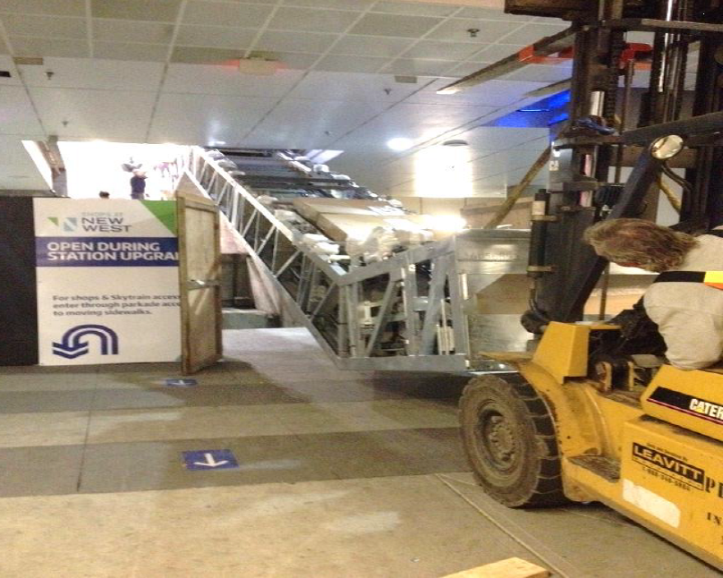 - The south entrance to the eastbound platform will be closed later this fall so crews can install a new escalator and stairs. Customers will be able to access the platform using Shops at New West escalators and stairs.