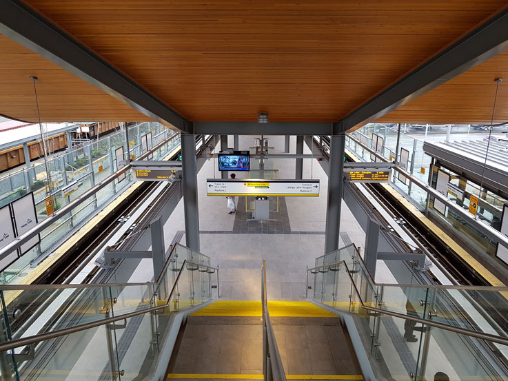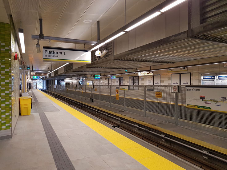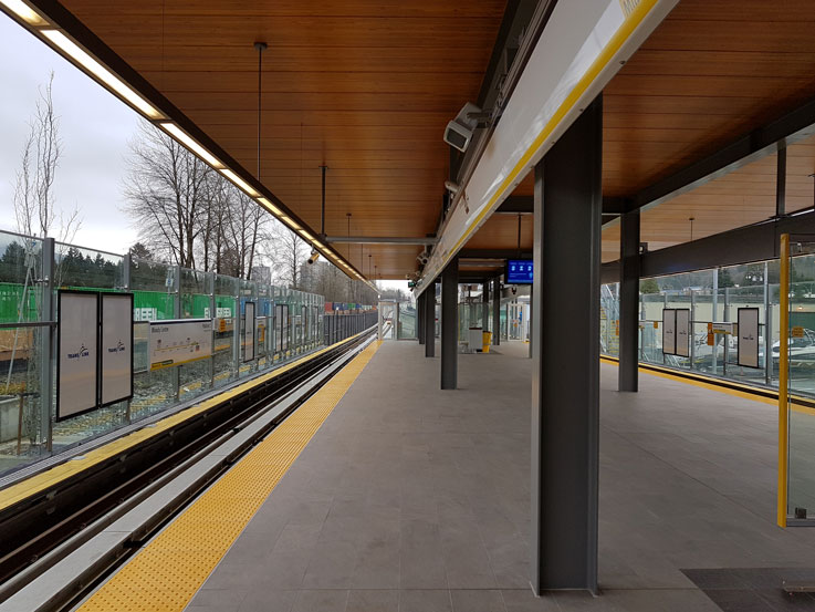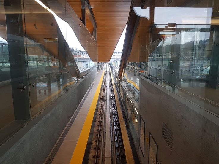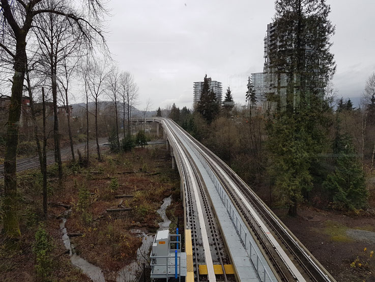 My favourite part is the stunning view of the landscape and scenery from Burquitlam Station and the view from the line running between Burquitlam Station and Lougheed Town Centre Station. One can look far away into the Metrotown direction, New Westminster city area and the SFU area.