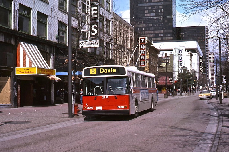 Or the #8 Davie bus on Granville Mall in 1984…that block was an original part of the Mall, but was converted back to auto traffic in 1988! Not to mention the pics of the old Stanley Park Loop on Chilco Street, etc.