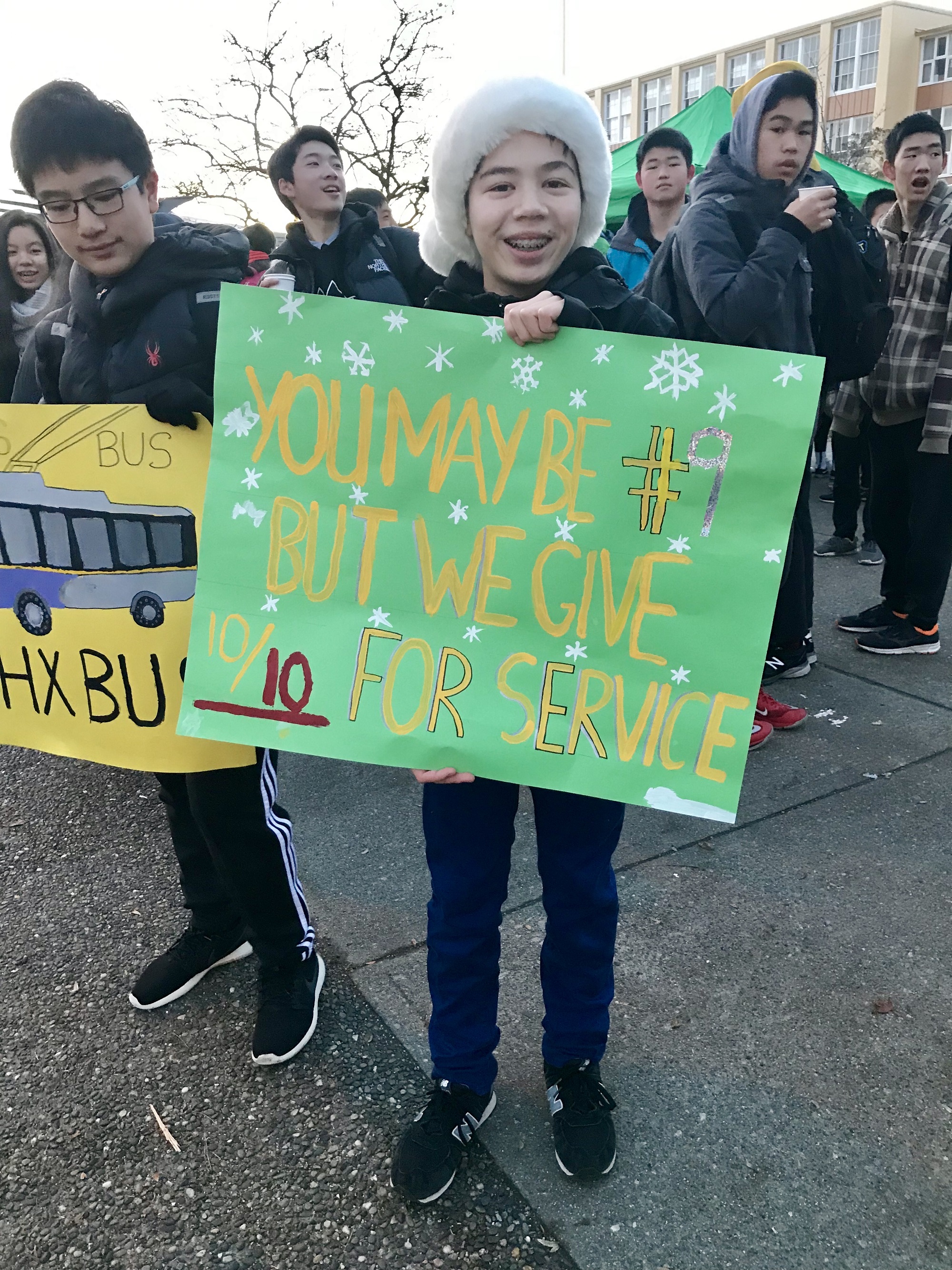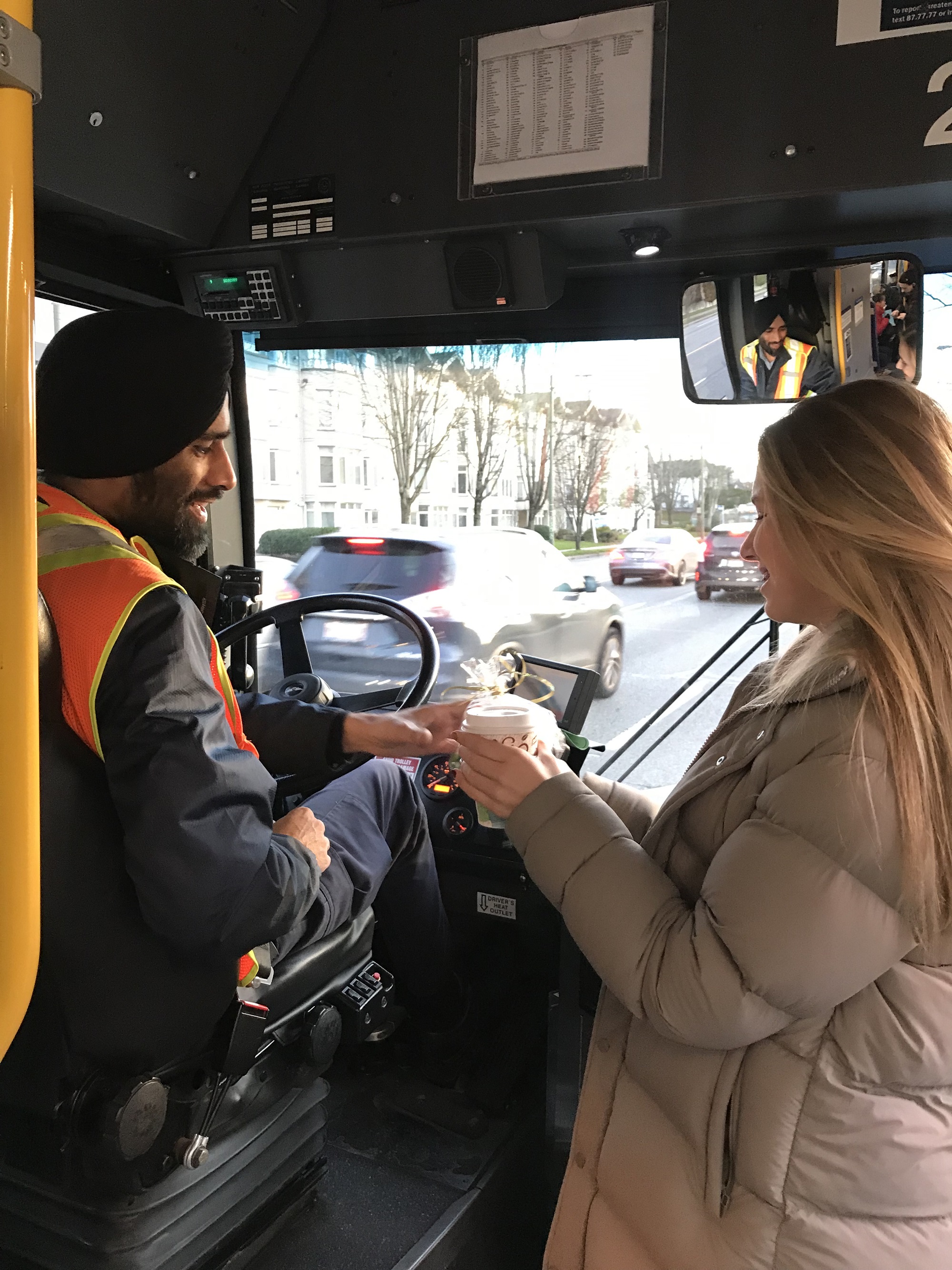 Each year, students from the Summit program at the Vancouver Technical School brave the early morning cold to show appreciation to their bus drivers by hand-delivering sweet cups of hot chocolate and a little gift to each passing bus.