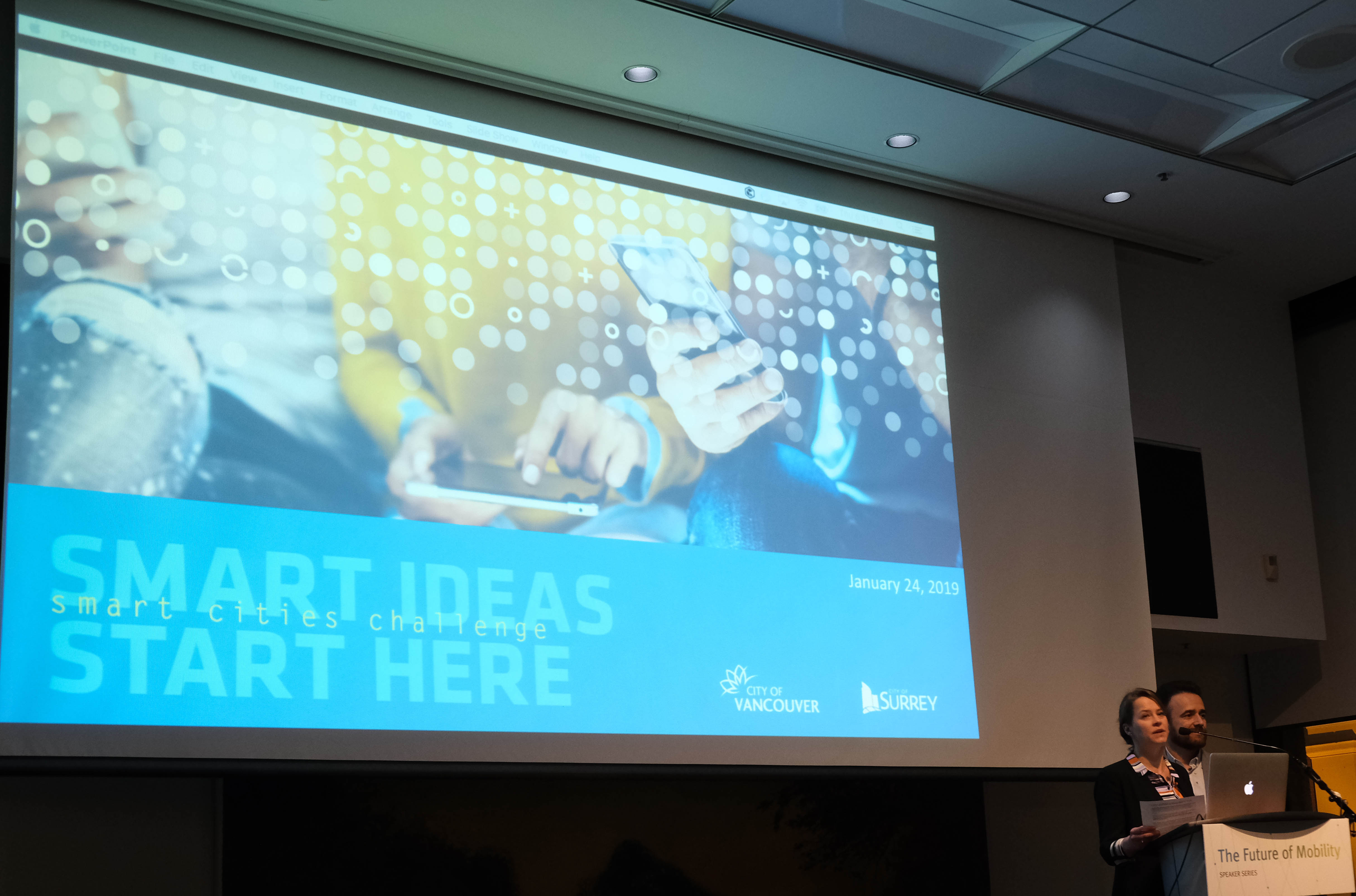 The City of Vancouver (represented by Joanna Clark, Citywide Transportation Planner) and City of Surrey (represented by Douglas McLeod, Transportation Planning Manager & Acting Transportation Infrastructure Manager) also took the stage to talk about their joint Smart Cities Challenge proposal. The cities are working to pilot autonomous shuttles in Metro Vancouver’s largest and fastest growing cities.