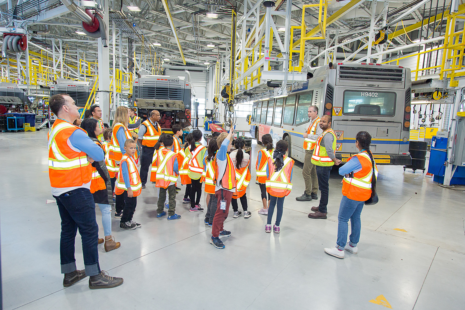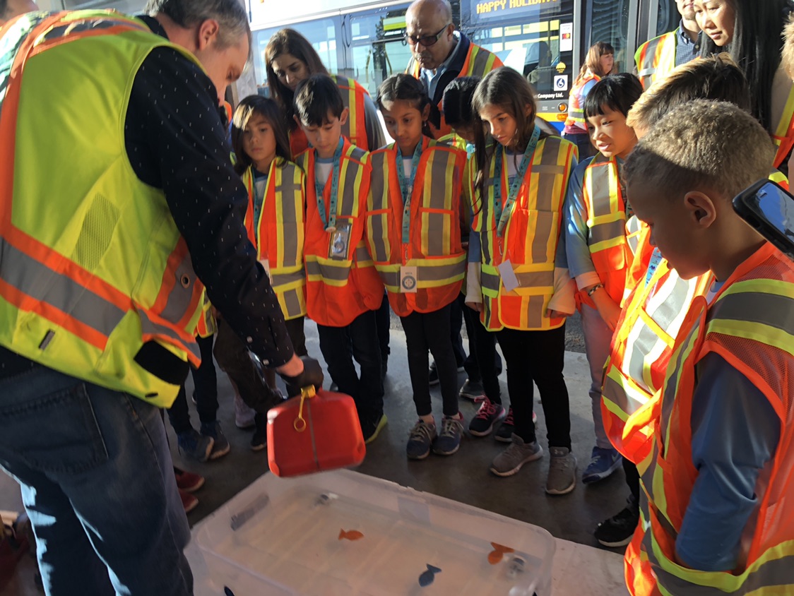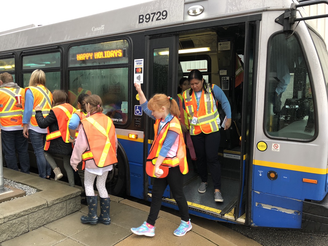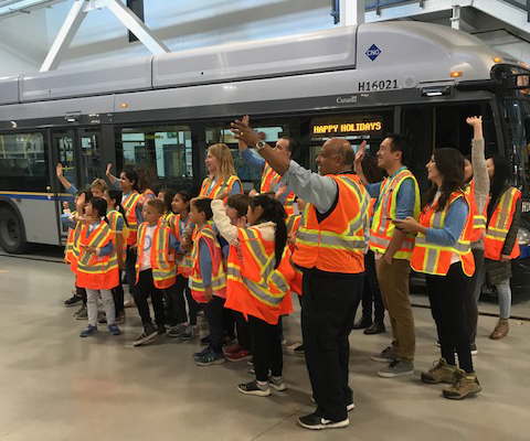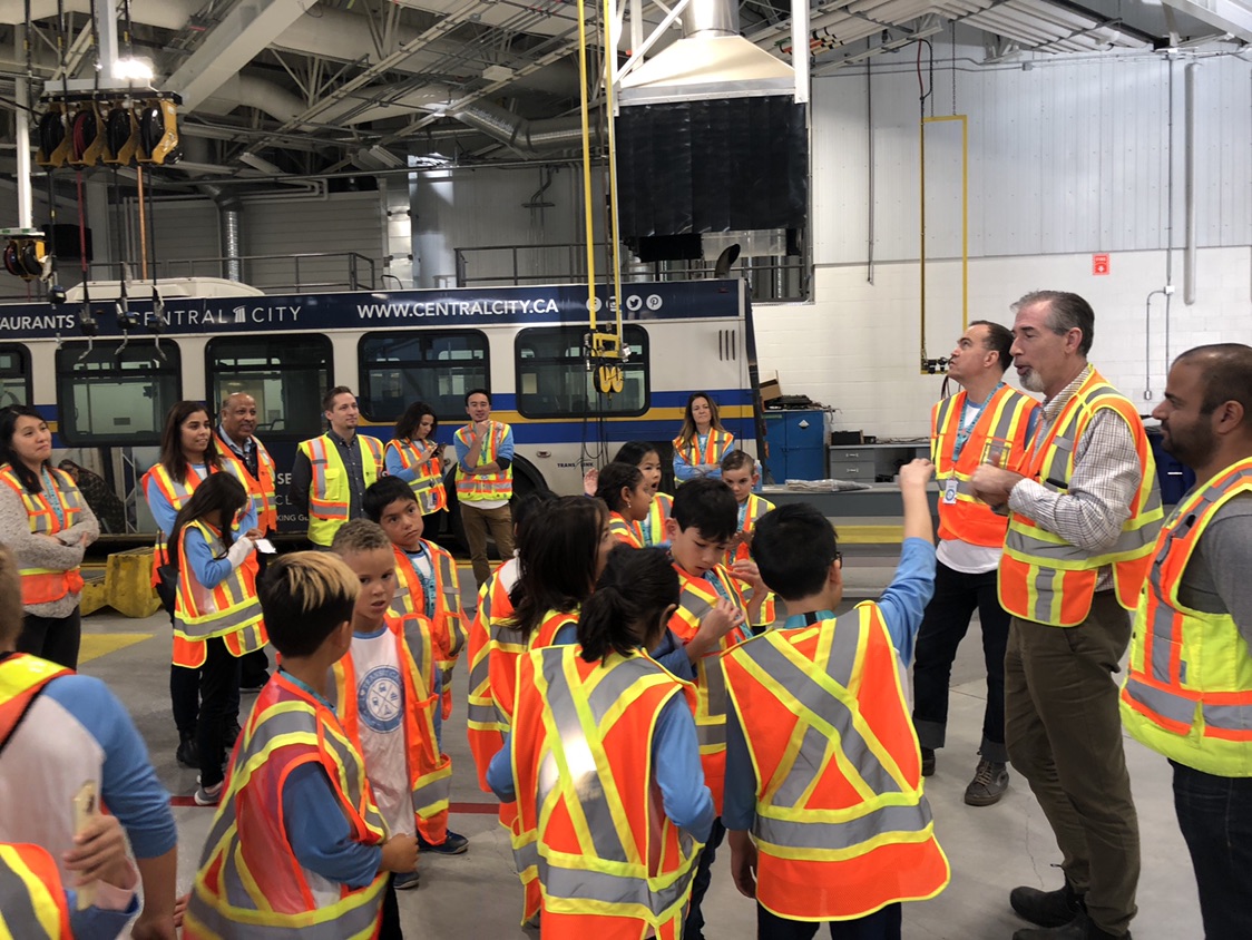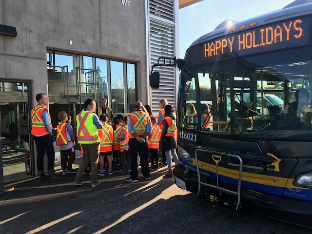 First up was Ms. Szelagowicz’s Grade 3/4 class from Tomekichi Homma Elementary School in Richmond! On November 16, we took them to the Coast Mountain Bus Company bus depot at Hamilton Transit Centre (HTC) and SkyTrain’s Operations and Maintenance Centre (OMC) in Burnaby.