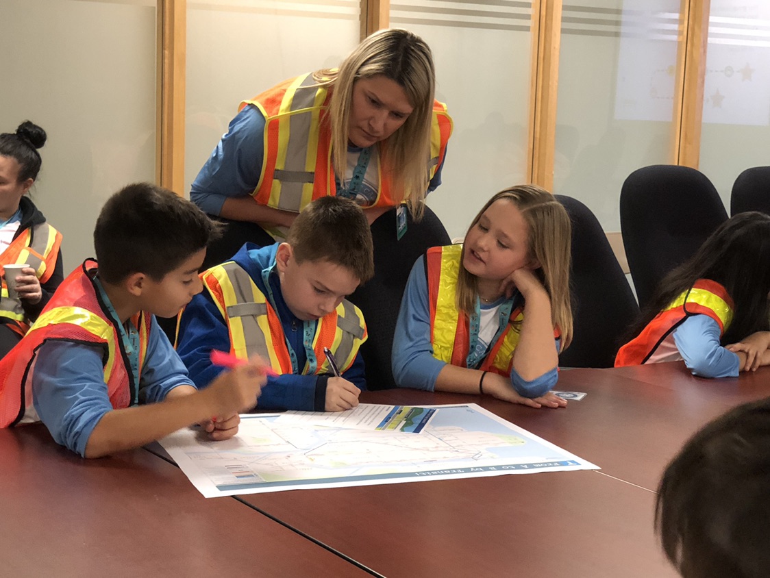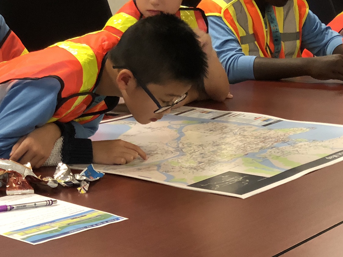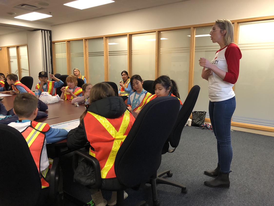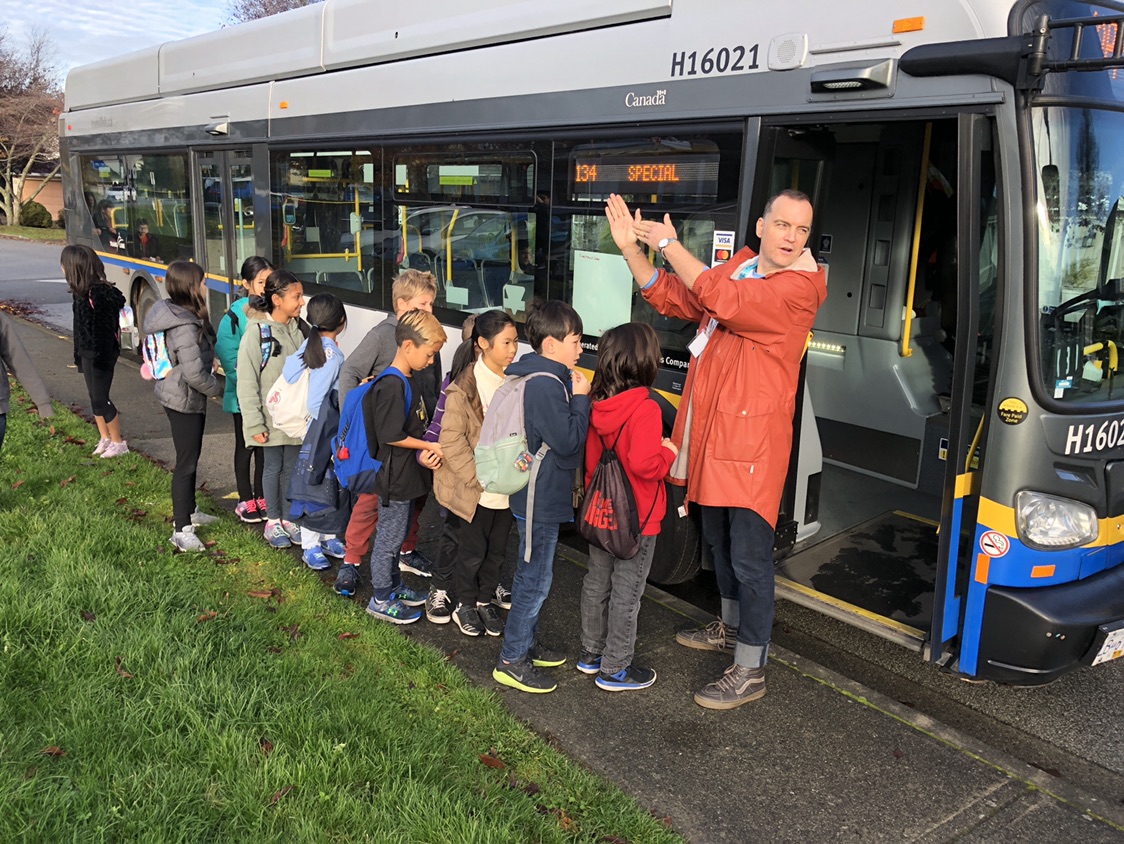 We did it again on November 23, when we took Mr. Andrews’ Grade 4/5 class from Cape Horn Elementary School in Coquitlam! For these kids, we added a visit by our amazing graphic designers and wayfinding specialists Jada Stevens and Elizabeth Wall who taught the class how to navigate their way across our transit system using maps and other wayfinding tools!
