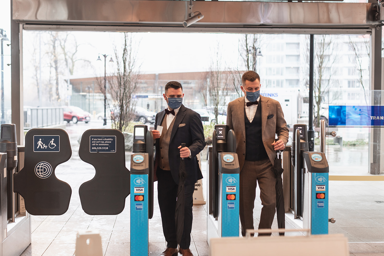 “There’s something about that moment when you get on the train in Port Moody,” says Kyle. “You have this time to sort of zone out and decompress. You don’t have to focus on anything else. That was the first time we read each other our vows. It was our chance to talk about how the day was going, and to calmly recentre ourselves. Because after that, the second we got off the train it was a whirlwind. Taking transit was really a special moment for us.”