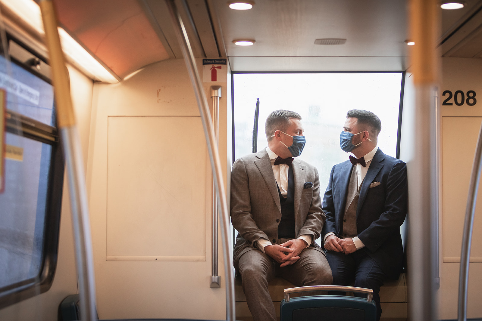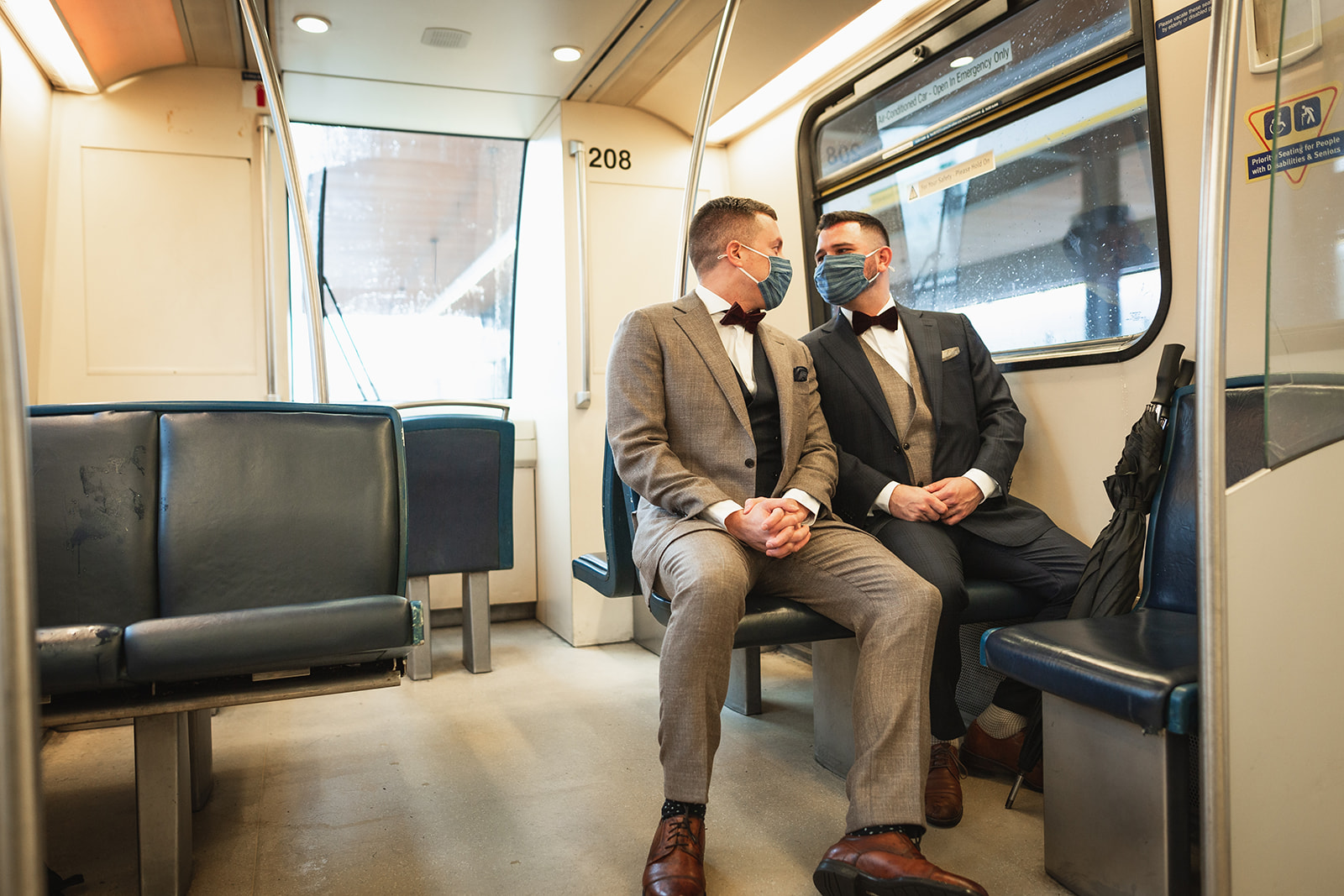 Anyone who has planned a pandemic wedding knows, things change constantly and you have to be adaptable. Kyle and Aaron were no different, they had to re-plan their wedding several times. But they knew despite the ever-changing restrictions, they wanted to make transit part of their big day and have a moment to themselves.
