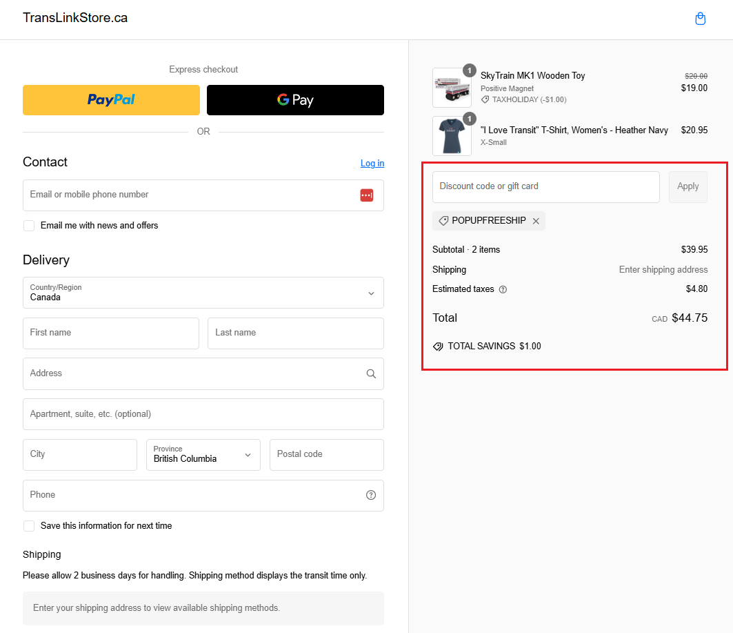 - Use the promo code – At checkout, enter POPUPFREESHIP to waive shipping fees.