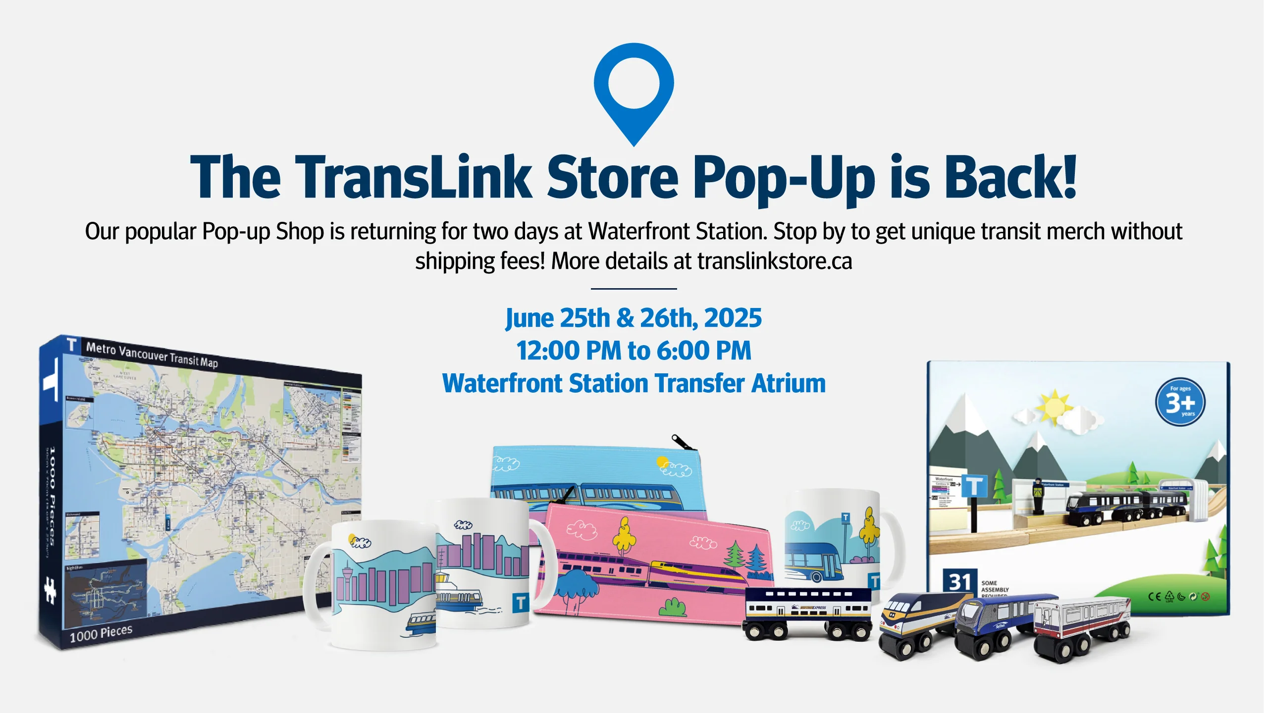 Mark your calendars! The TransLink Store pop-up shop is setting up at Waterfront Station once again for two days only, June 25 and 26.