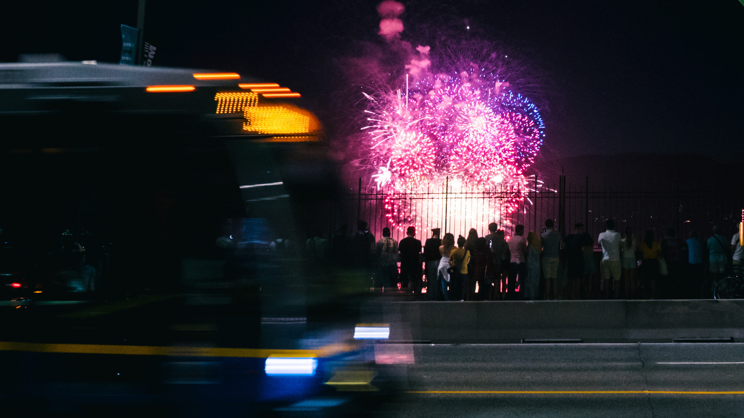 Going to the fireworks and home by transit